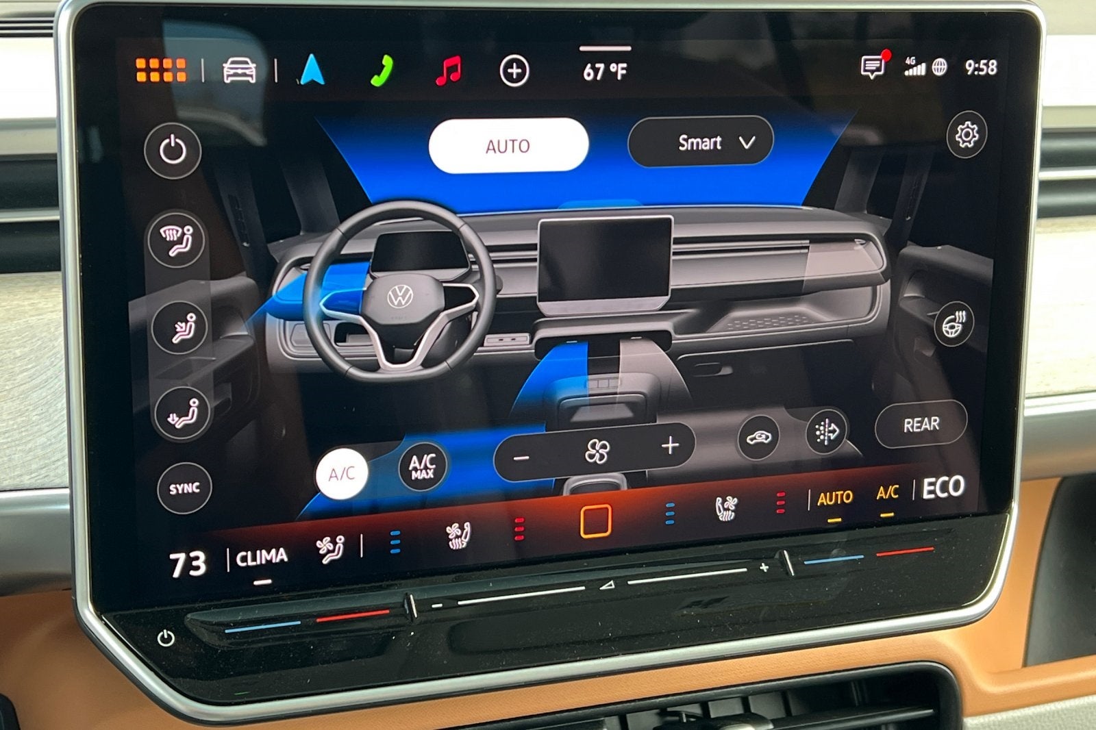 - Radio: Discover Pro Max w/Touchscreen Navigation -inc: 12.9 inch touchscreen multi-function center display w/backlit sliders, FM/HD Radio, WMA/MP3/FLAC media player w/voice control, Harman Kardon premium sound system w/13 speakers, subwoofer and amplifier, Bluetooth® connectivity (for compatible devices), SiriusXM w/360L (w/3-month free trial subscription; must accept SiriusXM terms), App-Connect smartphone integration (w/Apple CarPlay, Android Auto and MirrorLink) via USB, wireless App-Connect smartphone integration (for compatible devices) w/multi-phone pairing capability, capability for in-vehicle 4G LTE enabled Wi-Fi (cellular data plan required; includes limited trial), capability for VW Car-Net services (capabilities for certain services vary; requires enrollment or subscription) and Qi wireless inductive charger (for compatible mobile phones and accessories) in front row