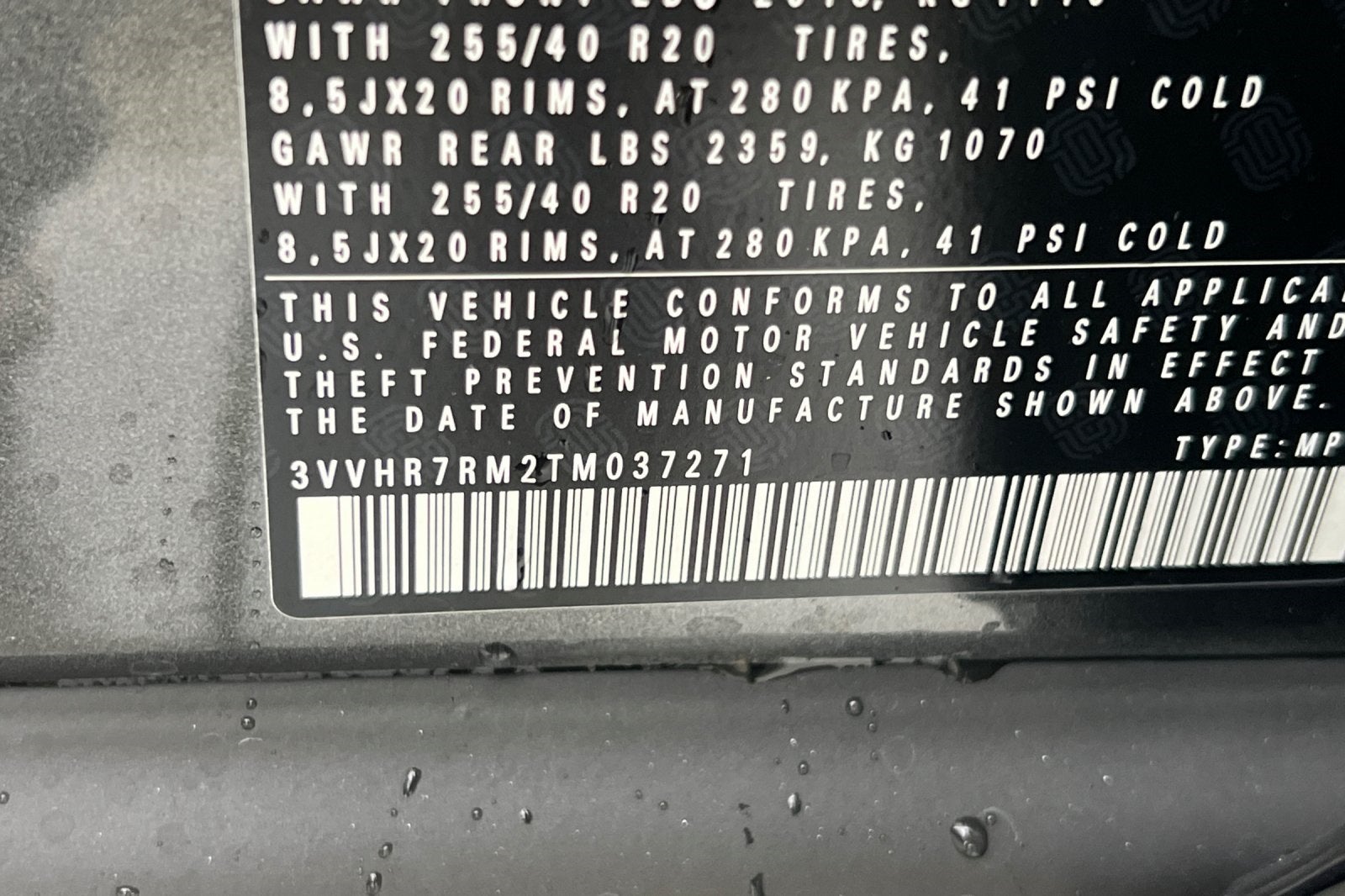- Rear Tire Size: P255/40HR20